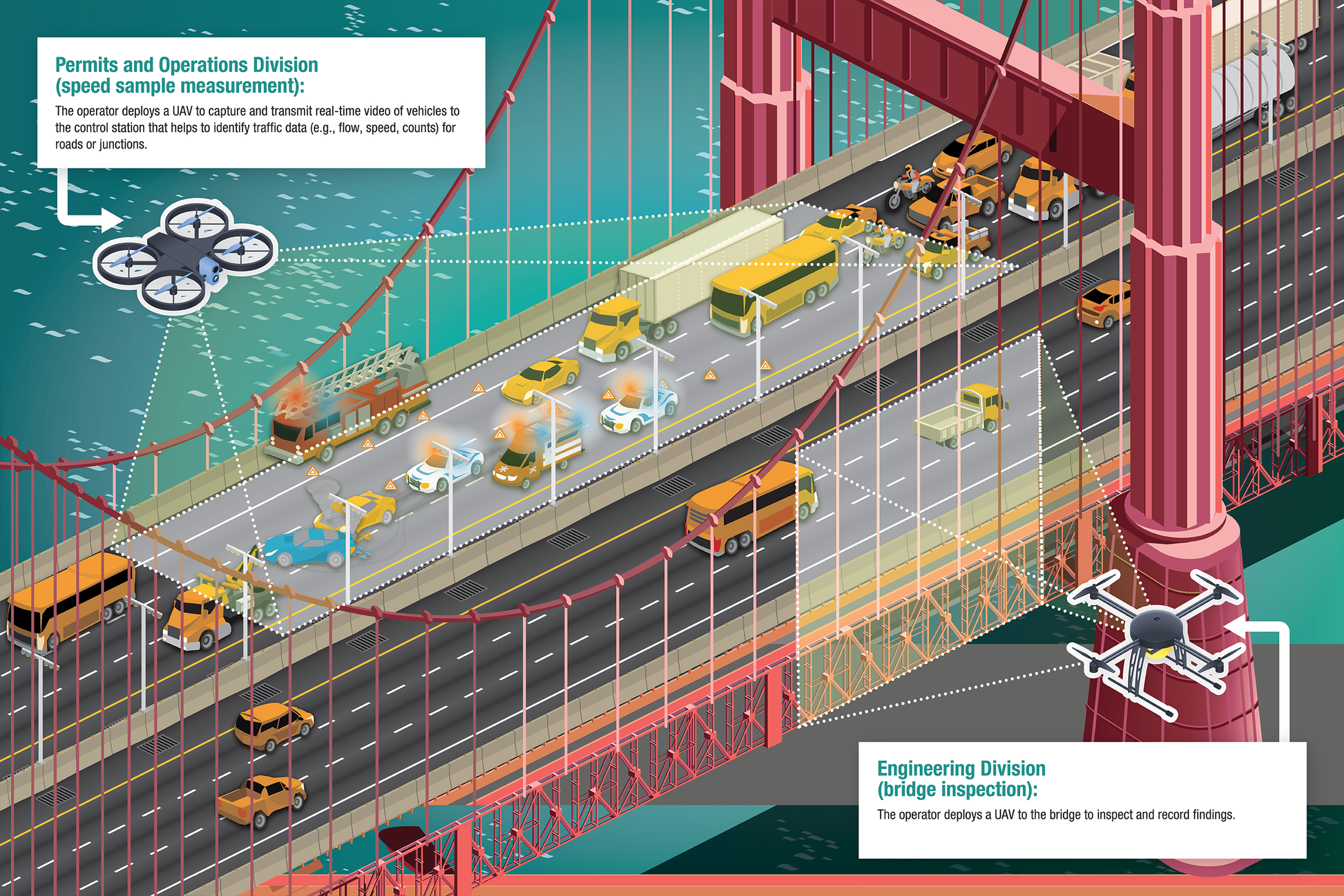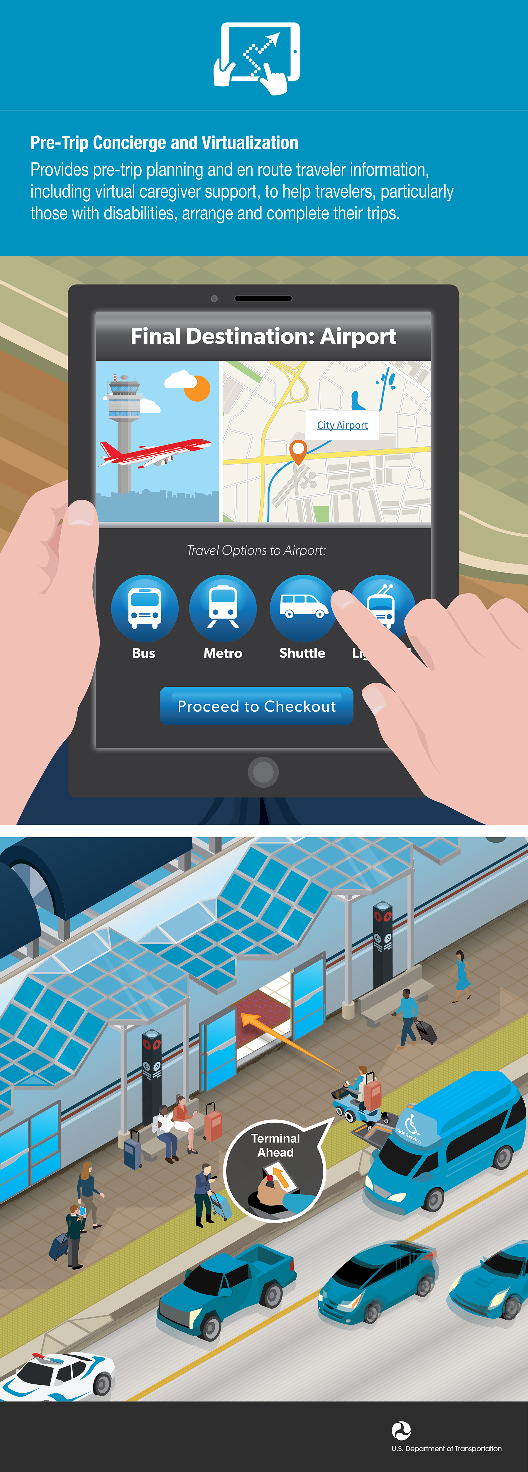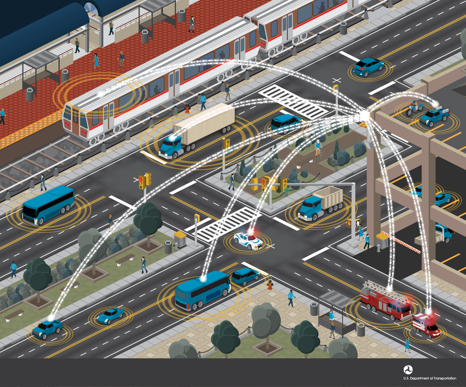 Illustrations showcasing U.S. DOT’s cutting-edge technologies and applications that contribute to a safer, greener, and smarter transportation world.